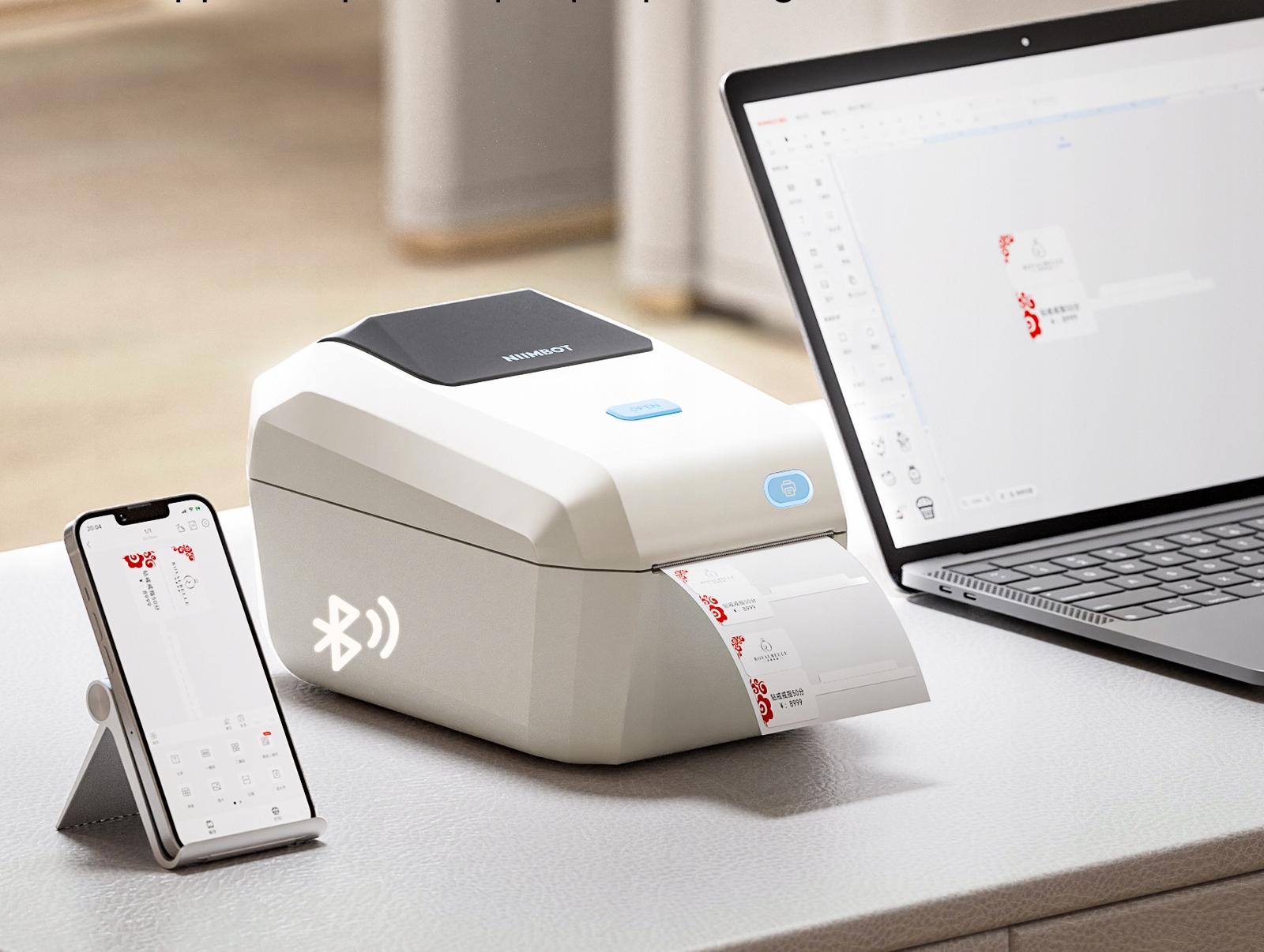 Drukarka jest kompatybilna z systemami Windows, macOS, Android i iOS. Intuicyjna aplikacja mobilna NIIMBOT ułatwia tworzenie i edycję etykiet, a także umożliwia szybki druk przez WiFi lub Bluetooth.